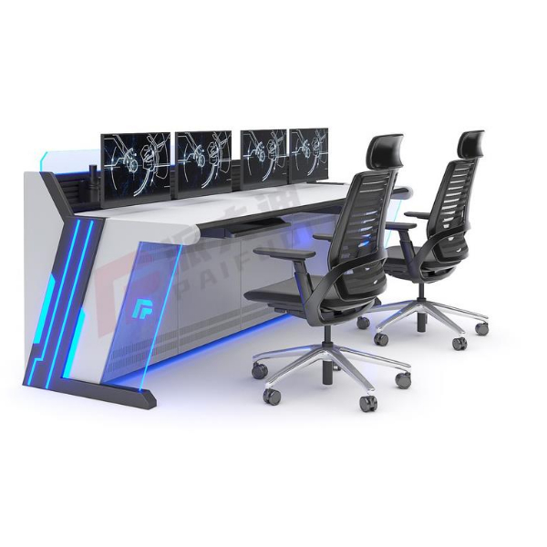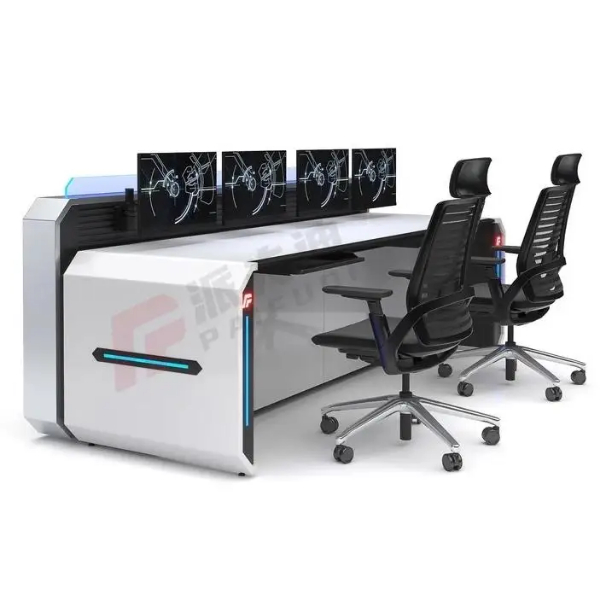 ⑦柜体上部(平台式除外)首层为倾斜面,与台面夹角为105度,从第二层起与台面夹角为90度。有利于操作员在长时间目视画面时眼睛不疲劳;
